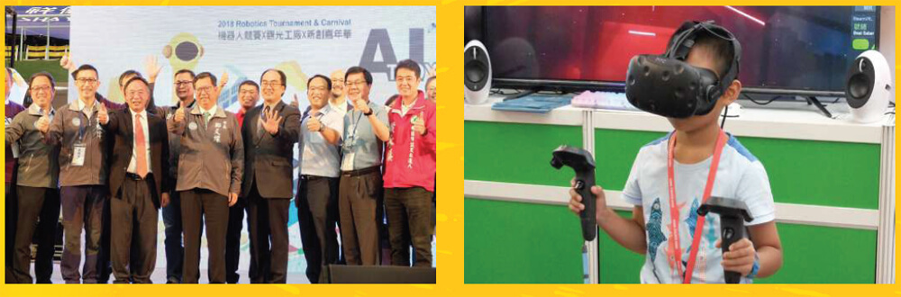 歷經一年半的籌備,在桃園市政府的整合下,動員產官學各界共同參與,結合「2018 TIRT 全能機器人國際邀請賽」、「觀光工廠嘉年華」與「新創嘉年華」的「AI TAOYUAN」於10 月19 ~ 21 日在桃園小巨蛋盛大舉行,這是亞洲規模最大的機器人國際賽事,三天吸引超過十萬名觀眾參與,透過這場競賽也讓機器人+ AI 教育達到普及化的目的。
