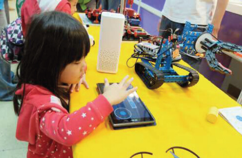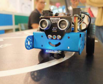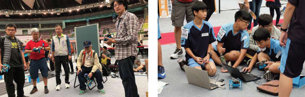 活動第二天登場的「金屬積木自走車接力賽」以各級學校師生最熟悉的mBot 機器人為主角,採機器人接力方式完成賽程。本次比賽為推廣性質,分為中小學、高中職、大專社會等共三組。