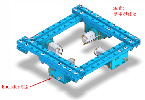 四輪卍字形底盤像四輪十字全向輪的變化,可以改變馬達的放置位置來節省空間