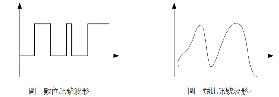 類比訊號:訊號有大有小,反應強烈數值很高,反之不強烈數值很低