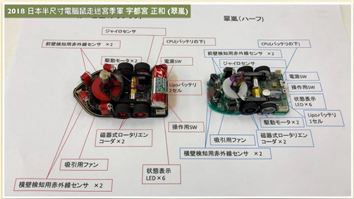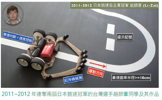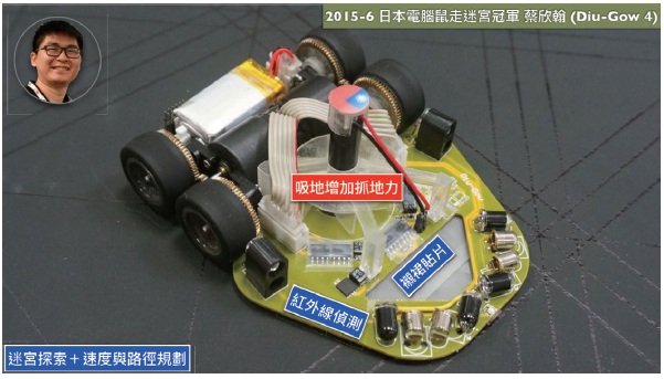 2017年的日本冠軍遠藤隆記雖然也是大學生,但是他突破四驅車的設計思維,採用類似防空快砲的高速傳動機構設計,再加上全車碳纖維手工打造的工藝技術,為電腦鼠立下新標準,緊接著2018年的日本競速自走車冠軍平井雅尊應用四旋翼增加下壓力以提高速度和穩定性,都是利用創造性思考不斷嘗試突破技術屏障,讓台灣學生大開眼界。