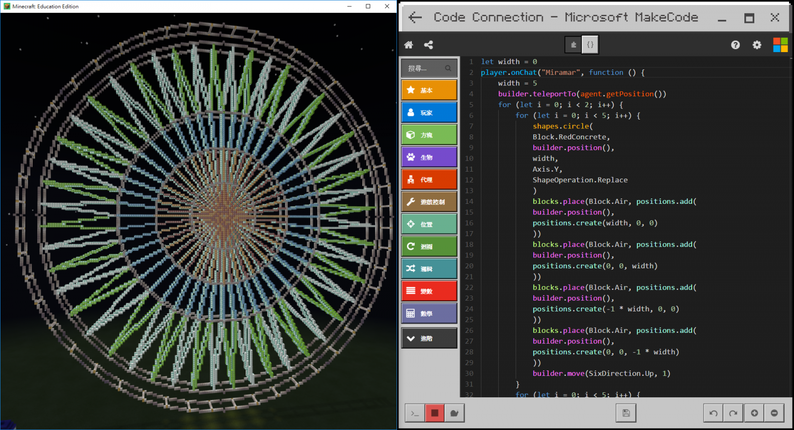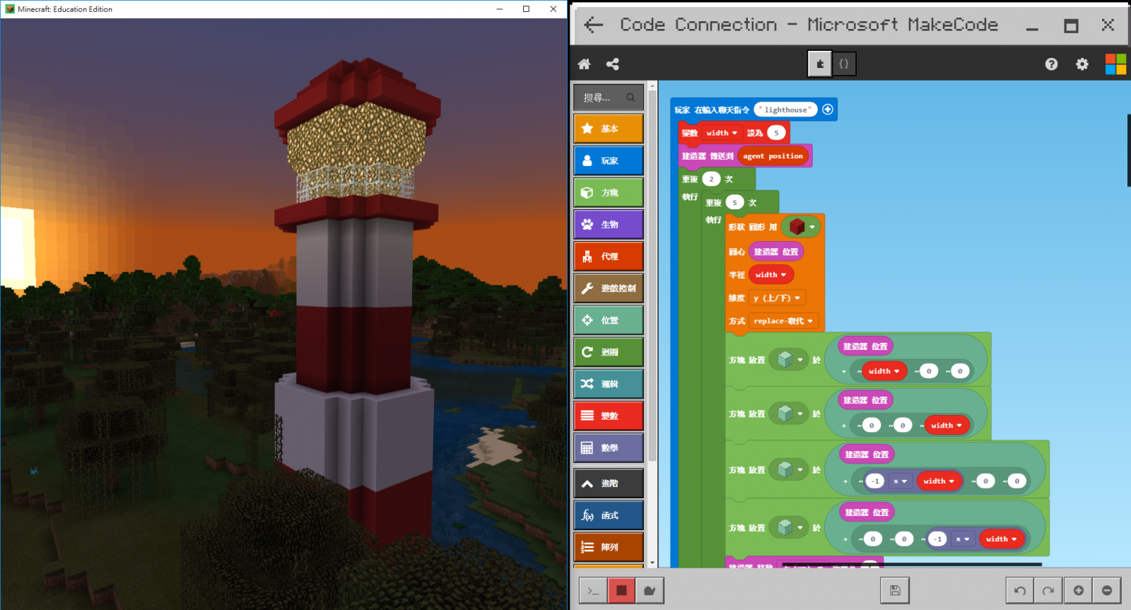 MakeCode 的編輯環境能讓學生能隨心而致的在 Minecraft 裡面設計自己所想要完成的事物,且更容易將自己的作品分享。此外還能夠應用於程式設計外的課程範疇,實現跨學科的STEAM教育。
