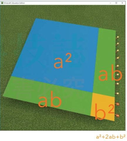 在 Minecraft 由方塊呈現的世界中,我們可以直接以圖像的方式表達以下拆接步驟:也透過遊戲與圖像的方式,讓學生喜愛數學更易學習。