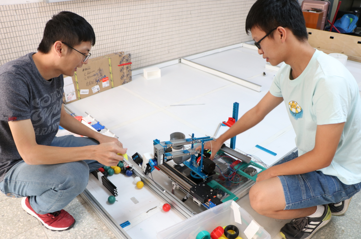 學生的創意總是天馬行空,瑰麗燦爛,但真的要捲起袖子動手實現,往往就會遇到許多問題,「因為以前的教育內容強調知識的獲得及技能的培養,沒有特別強調學習素養,在專題發想的過程,往往不是格局太小,就是太大太複雜」深耕資訊教育數十載的陳昭安老師解釋,「我們會適時的引導學生修正專題方向,盡量以可在一學期內完成的作品為主。但因為我們是資電類,教學重點還是數位邏輯設計、程式設計,機構這塊是沒有的,課程也沒有時間讓同學從零開始,所以我們一直在尋找材料齊全的套件組,可以讓同學方便加工使用。剛好在工科技藝競賽台科大圖書的攤位上看到Makeblock的創客空間套件,覺得很符合我們專題實作課程的需求,所以就用系上的材料費申請採購。」