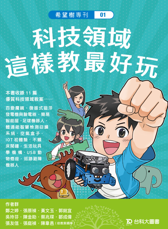 得獎的教案除了頒發獎品,又該如何發揮最大效益呢?為不負教師們的智慧結晶,也為了讓這些優秀的作品能廣為流傳,而不只是曇花一現,活動結束後就無人聞問,得獎教案由台科大圖書出版,發行《希望樹專刊01:科技領域這樣教最好玩》,讓更多教師能一睹精彩作品,並借力使力應用於自己的班級,呼應新課綱自發、互動、共好的精神,讓教案能遍地開花。得獎教師除了得到獎品,還能再領到專刊稿費。