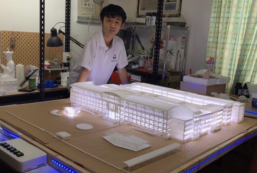 採訪韋翔時,他正在製作學校的模型並留給母校做為紀念
