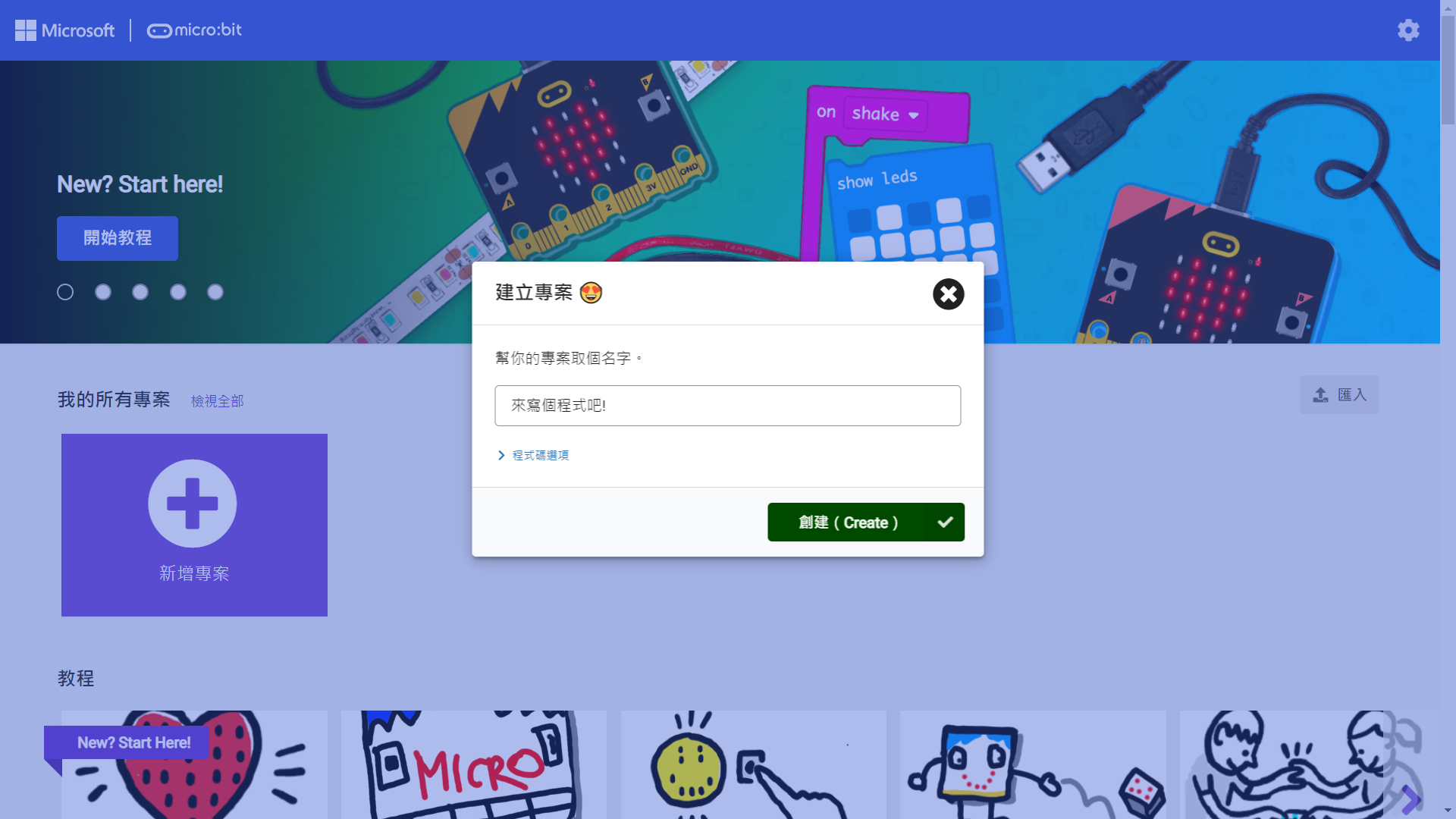 圖二 makecode網站 圖三 設定專業名稱