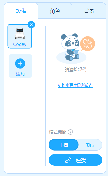 硬體方面的配置,程小奔在執行程式時建議使用"上傳"模式,由於即時模式其實是在電腦端執行程式,接著再即時把指令下達給程小奔,而上傳模式是在小程本身執行程式,省去了從電腦下指令的時間,在相同一段時間內,上傳模式能夠比即時模式做更多次的判斷,因此一樣的程式在不同模式下可能有不同的效果,尤其在循線時需要機體能較快做出反應,因此建議使用上傳模式。