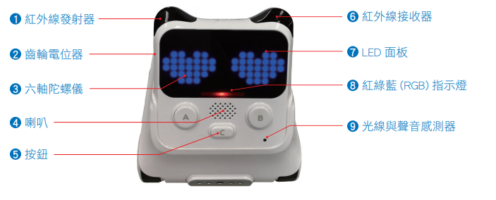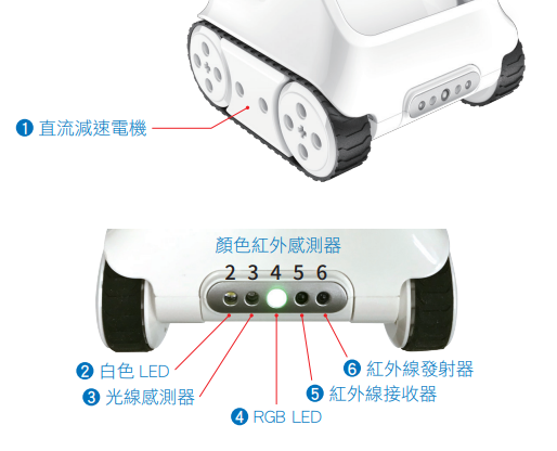 程小奔可拆分成小程與小奔,小程主要負責運行程式與聲光表現,小奔主要負責環境感測與移動,兩個部件都各自有許多的感測器與電子元件,學習完每一個元件的使用方式只是開始,多個感測器互相配合應用才是真正有趣的地方。