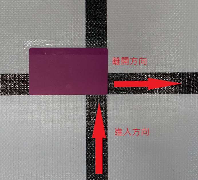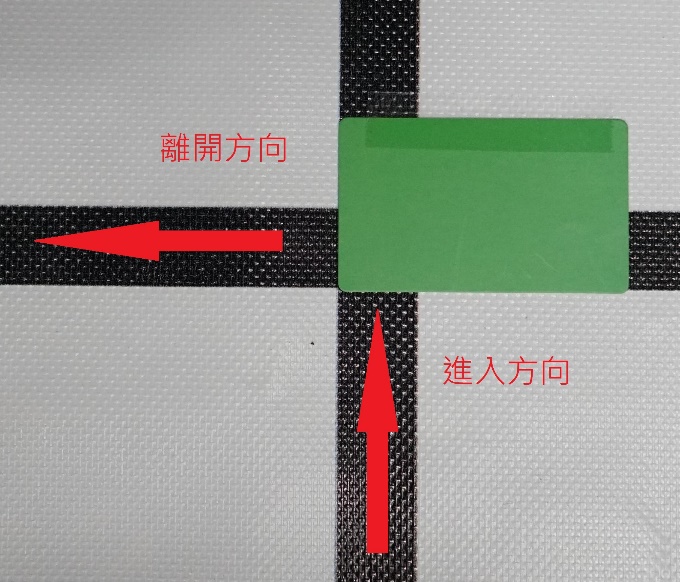 (合併2張小圖) 顏色信標誌放位置如下範例圖,色卡短邊指向應該轉彎遵循的方向。