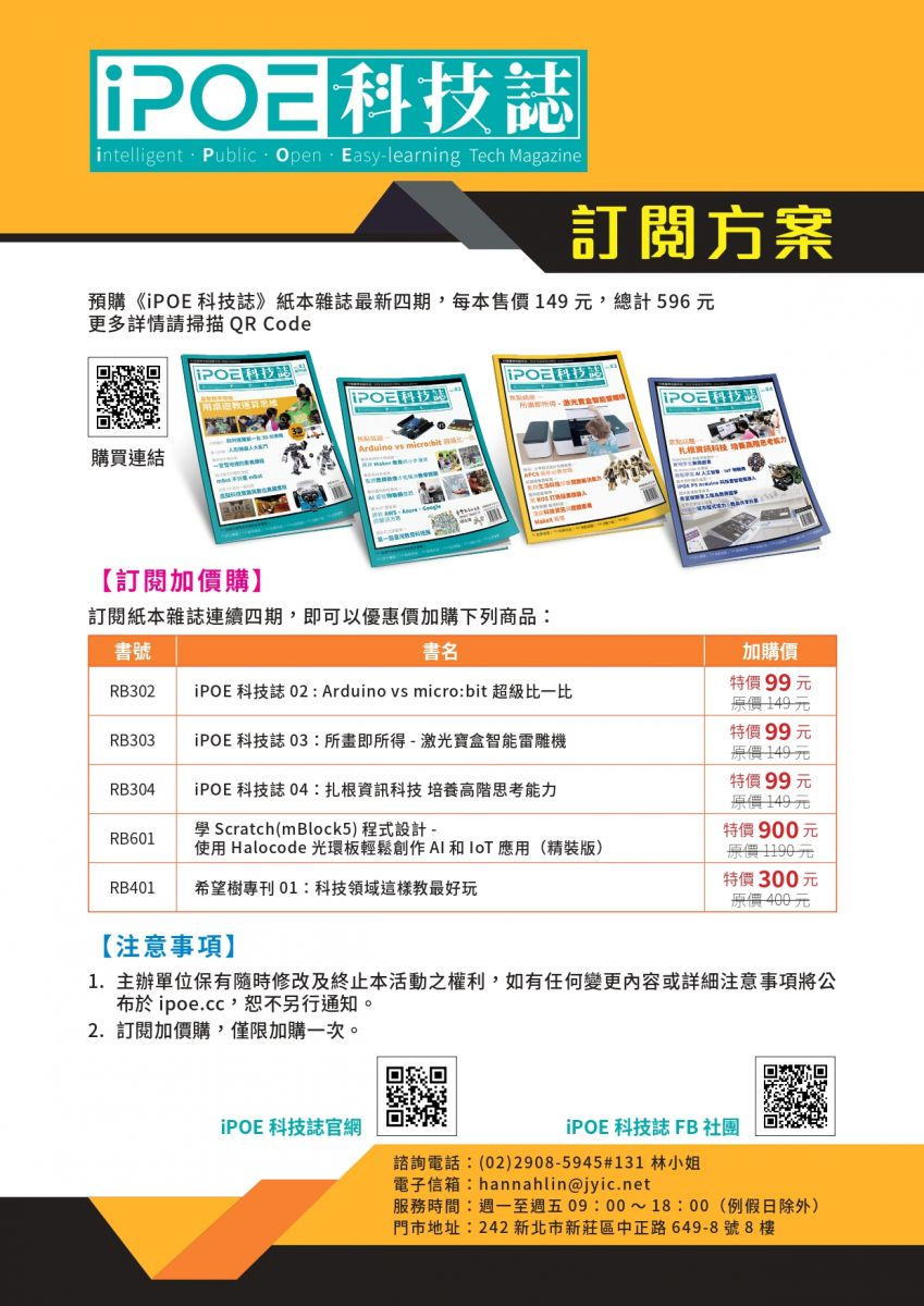 《iPOE科技誌》為全台唯一在地紙本雜誌,創刊於於2018年9月,以「打造產學共創平台」為雜誌精神,匯集各地教師的經驗和知識分享,也向產業界汲取最新資訊,目前為止出版五本雜誌。