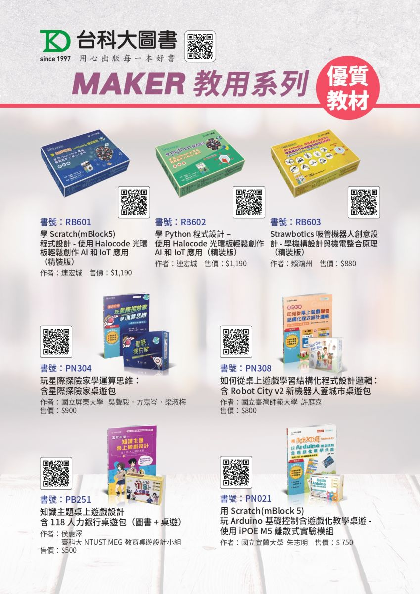 老師的心聲我們都聽到了,台科大圖書隆重推出「MAKER教用系列」,紙本雜誌書籍提供老師知識補給;盒裝桌遊,書籍加教具,備課不用再怕缺東西。