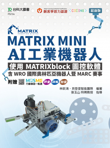 本書是針對 MATRIX機器人學習套件與Arduino程式設計的綜合學習指南,專門為初學者及進階學習者設計。結合了機器人的硬體組裝與軟體設計,透過任務執行的教學方式,幫助學習者從基礎知識入門,進行機器人的自主設計與操作。書中不僅包括了機器人的基礎概念、技術知識,並涵蓋了國際機器人競賽的規則與準備技巧,幫助學習者輕鬆參加競賽。